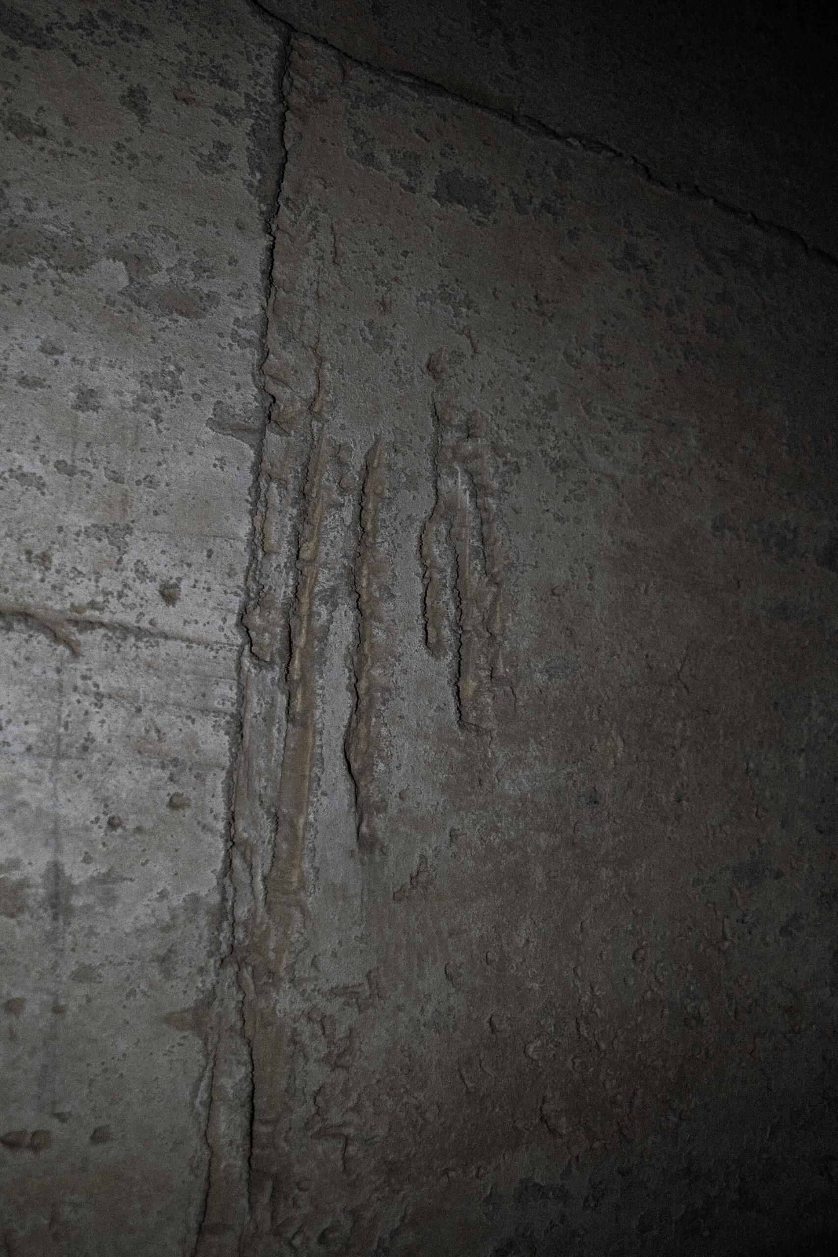 Ici, chaque trace dans les murs n’est pas naturelle, mais a été faite par une main. Une main d’un.e ouvrier.e il y a potentiellement des années si ce n’est des décennies.